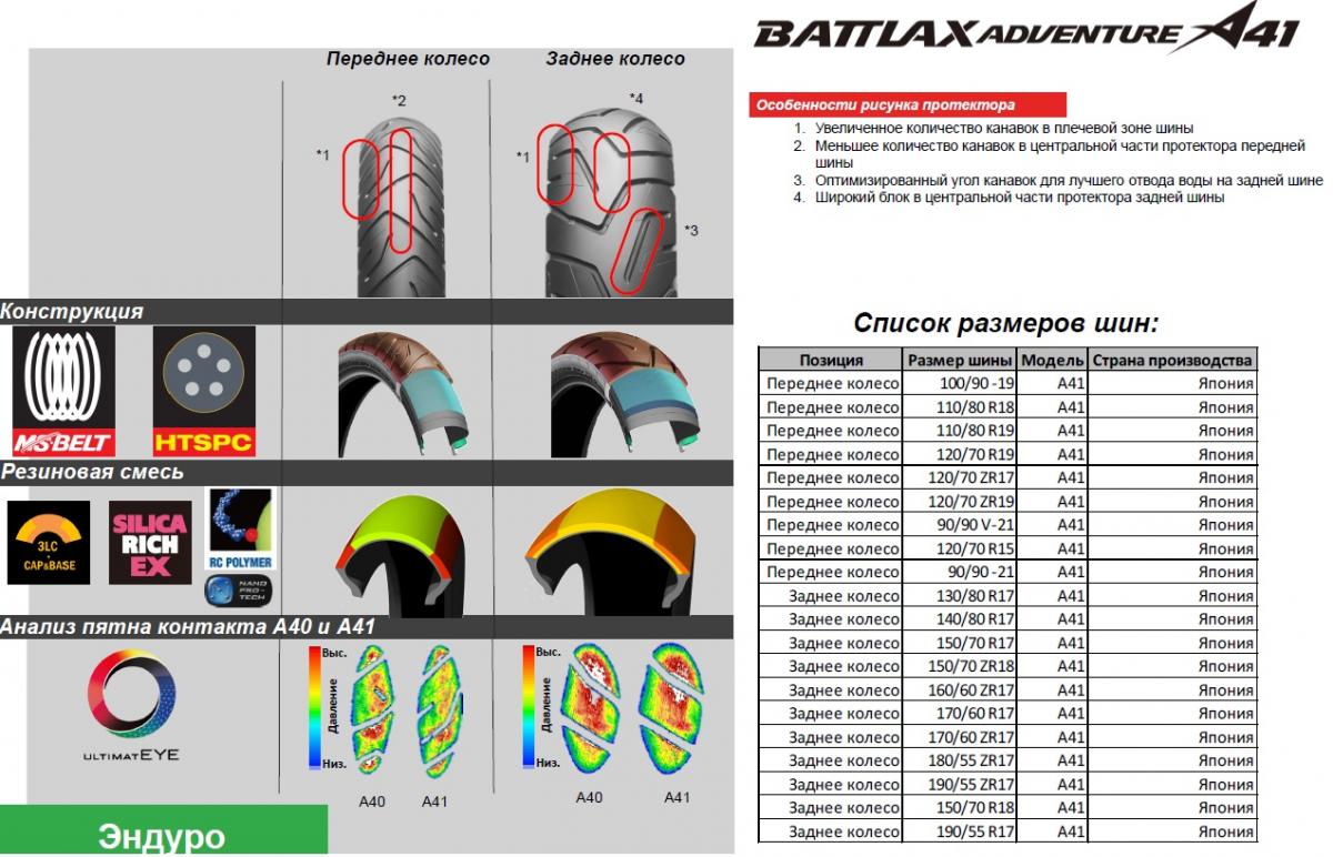 Все мотошины модельного ряда Bridgestone A41